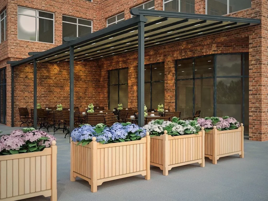 A stylish and durable outdoor structure made from aluminum, providing shade.